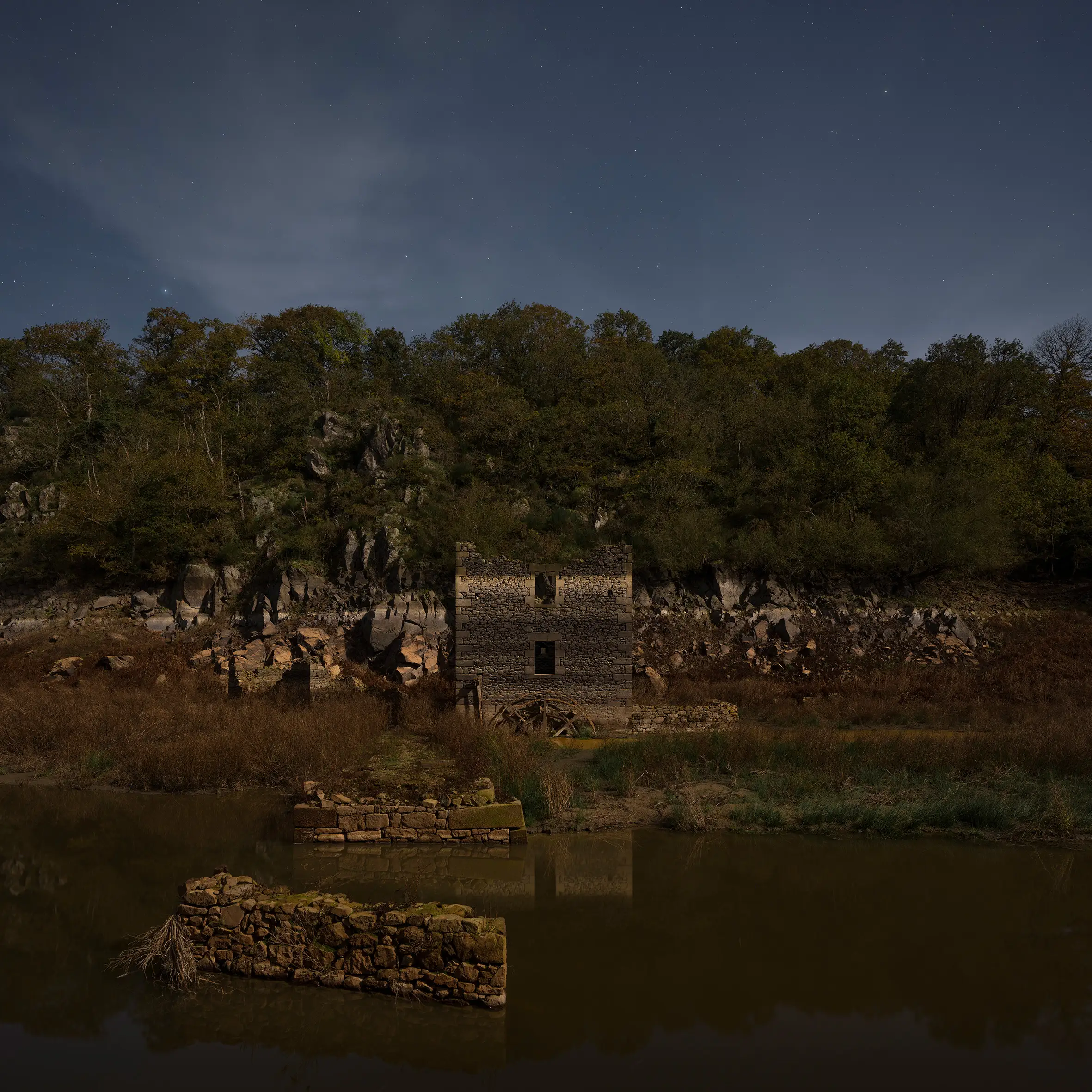 Je suis parvenu à photographier ce moulin par une nuit de pleine lune juste avant qu’il retourne sous l’eau.